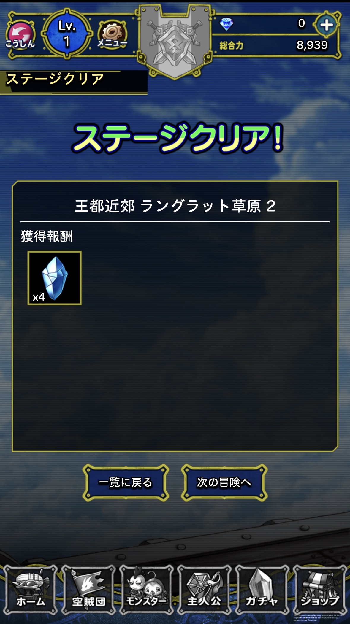 報酬の受け取り:経験値・ゴールド・アイテム・モンスターが手に入る
