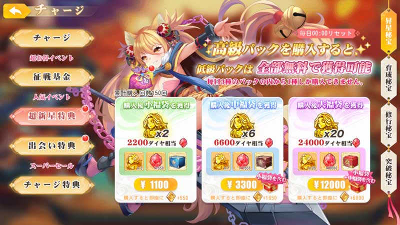 課金をする場合、いきなり高額パックに手を出す必要はありません。