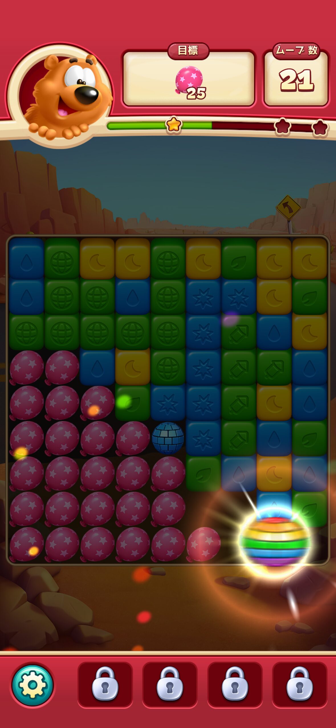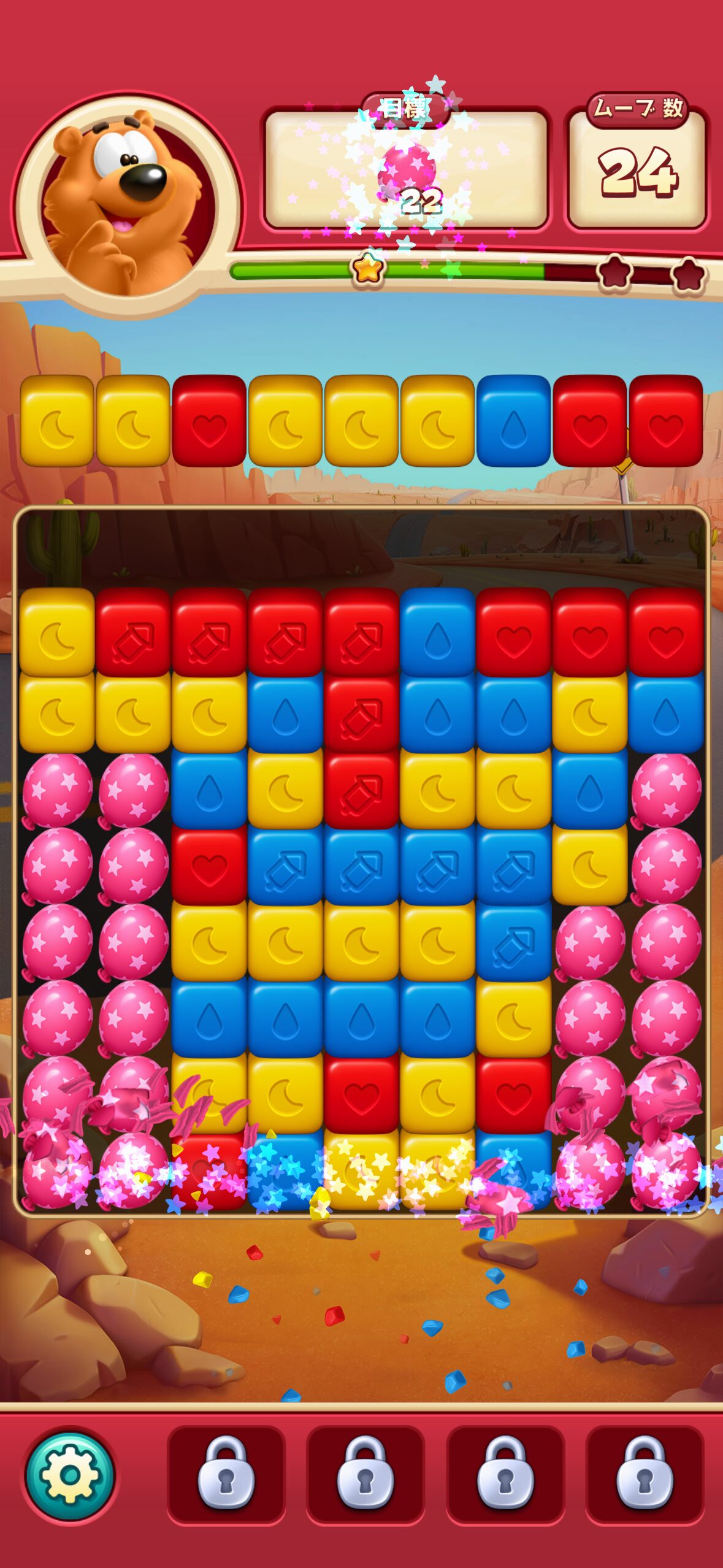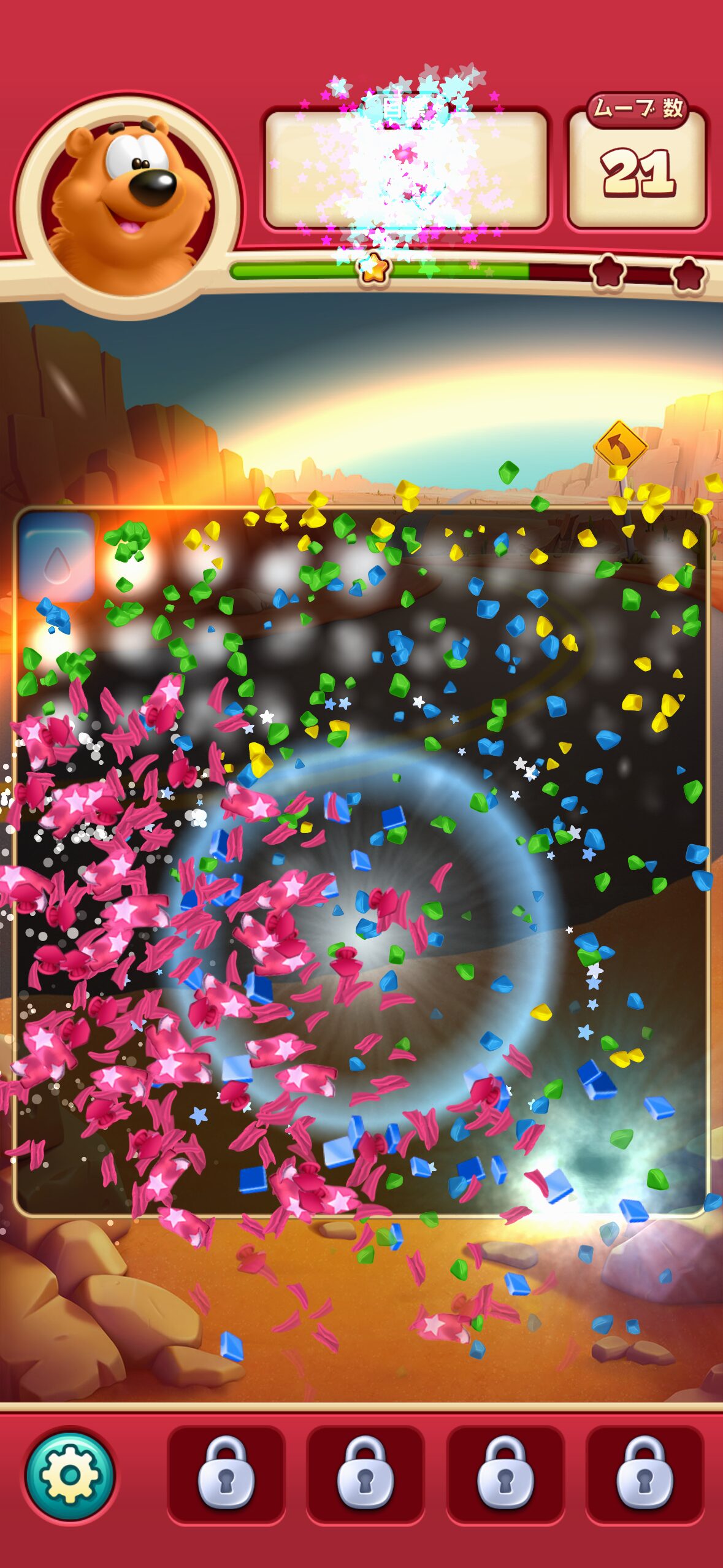 また、中〜高いレベルになると、与えられる手数(ムーブ)が少ないのに要求数が大きいステージが増え、「運が悪いとずっと抜けられない」感覚になることもあります。