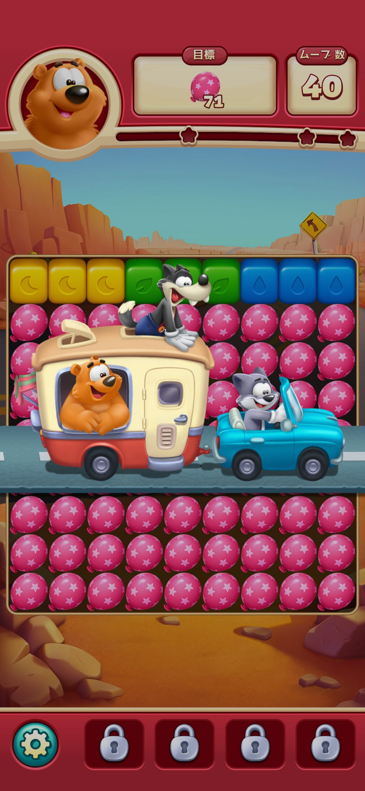 時間をかけて進むと、ある段階から急にクリアが難しくなり、同じステージに何度も挑戦する必要が出てきます。クリアのためにブースターやコインを使わないと厳しいと感じるかもしれません。