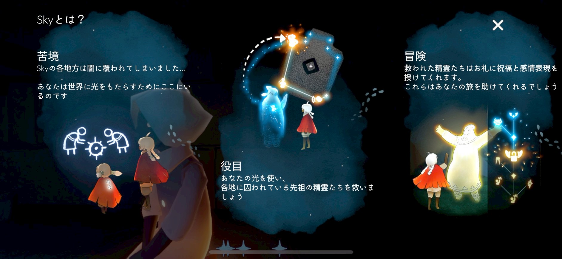『Sky 星を紡ぐ子どもたち』は、映画のような世界に引き込まれるところから始まり、ストーリー性のある深いゲームです。